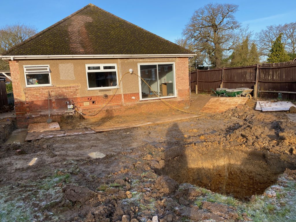 Additionally, we agreed with the building inspector when he signed the foundations off on Friday last week that we’d put in a new soak away. As the house is having a new roof and we can’t prove the existing soak away, best be on the safe side and put a new one in. The cost for a new soak away is around £2500 as you need to dig a 2m x 2m x 2m cube, then fill it with crates and other materials, bring new pipework in to it, then eventually back fill and cover it up.